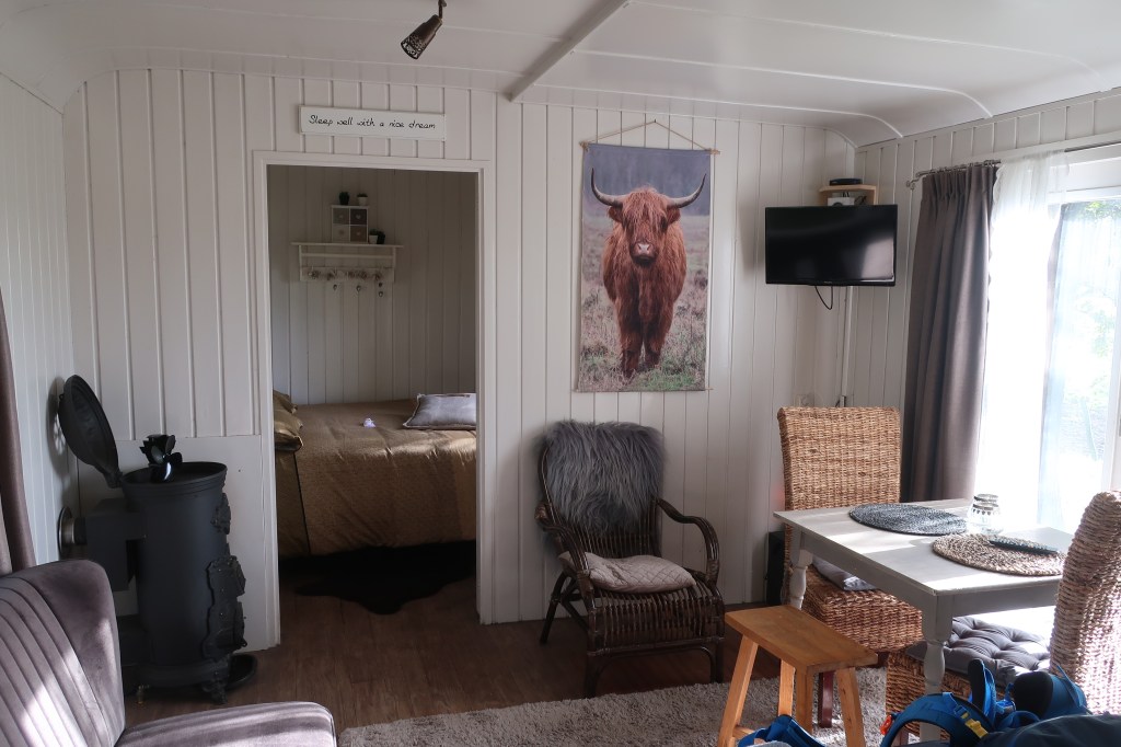 Wir mache uns auf den Weg zur Unterkunft. Ich habe die genaue Adresse nicht aufgeschrieben, habe mir aber die Strasse gemerkt. Wir radeln Richtung Lichtenvoorde und halten Ausschau nach einem Bauernhof mit Zirkuswagen (Pipowagen). Wir finden zwar viele Bauernhöfe, aber kein Pipowagen und auch kein Schild.. Nach längerem Umherirren fragen wir einen Nachbarn, der sein Auto wäscht. Er zückt sein Handy und weist uns nach kurzer Suche die Richtung. So finden wir die den Bauernhof Logeerderij het Landleven dann doch noch.